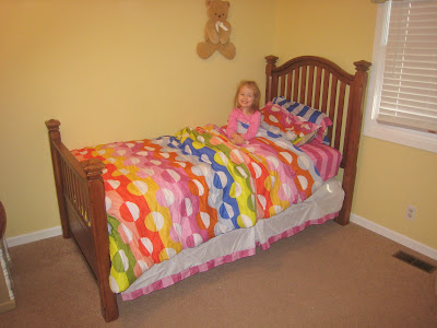 Now that we've got that straightened out, here goes. Last week Hubby and I finally decided to fork over the cash for a twin bed for Grace. She's a little over four now, and the toddler bed just really needed to go. So we went out to buy her a new one and she. was. thrilled. She scurried from bed to bed, professing her undying love for each one. The more excited this child gets, the louder she gets, and the squeakier her speech becomes. She becomes a tiny bouncing blur of loud. We don't pretend like we don't know her even though it would probably be understandable.